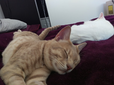 Cloud is increasingly obviously pregnant – she’s getting a bit barrel shaped around the middle, and is waddling around looking for good nesting sites in all the cupboards and in our bed. She’s pretty happy, although a bit ungainly at the moment, and very affectionate. It’s super cute; she comes and stands up next to me and wraps her ‘arms’ around my leg and mews for attention, like a toddler. She’s also eating like a horse.